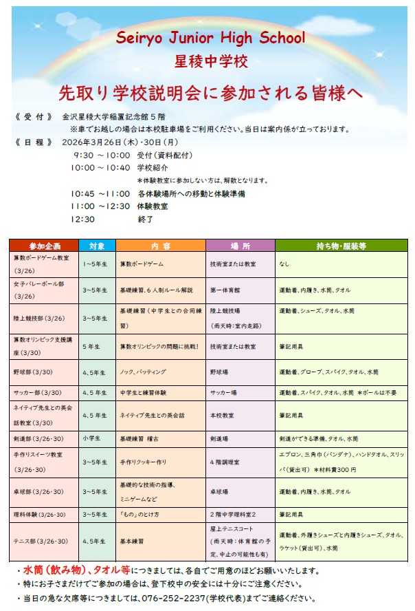 ・ミニ星稜祭体験の参加は自由です。