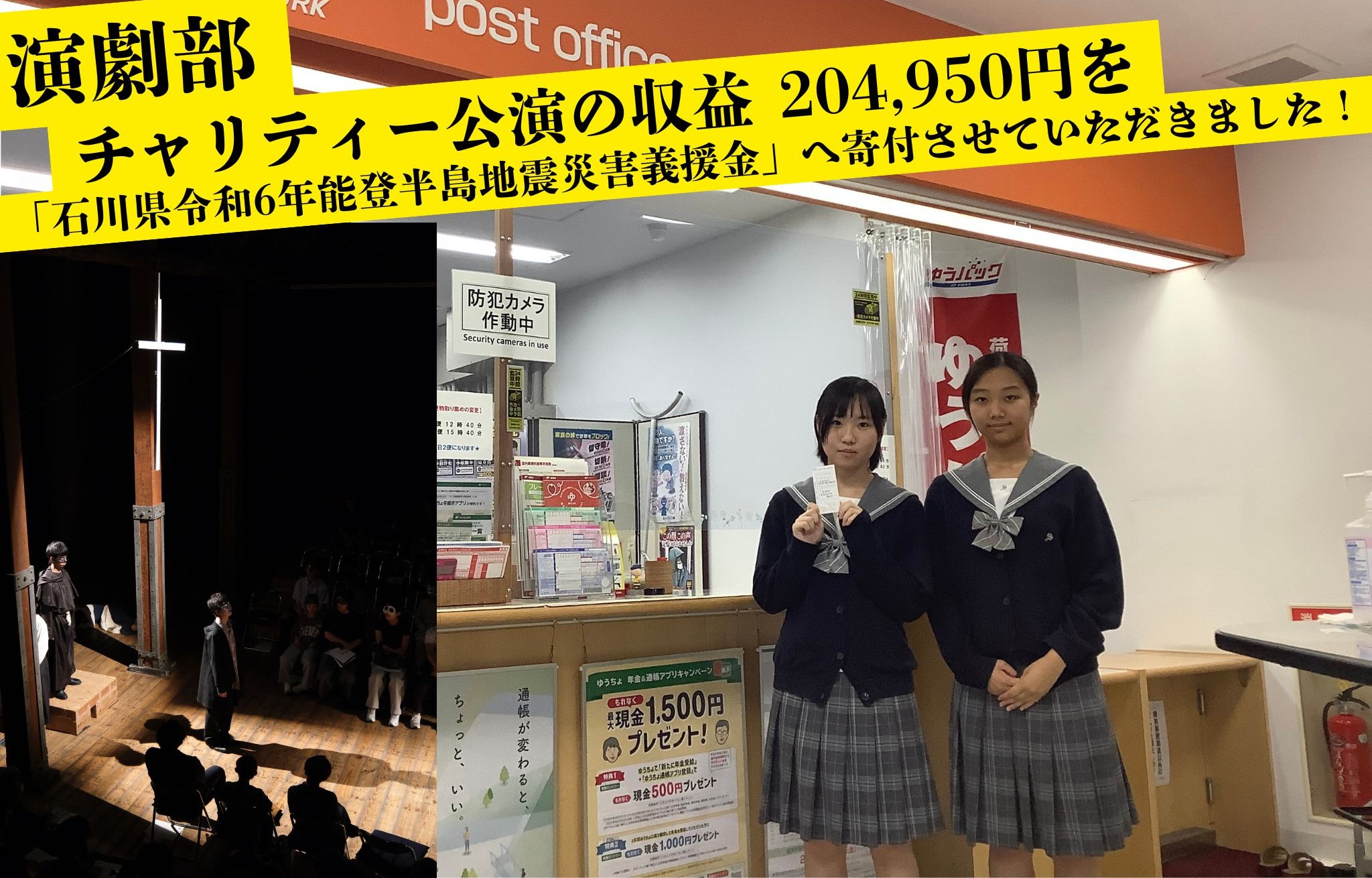 9月27日から28日にかけて、金沢市民芸術村ドラマ工房にて、星の劇団との合同チャリティー公演「Accusation+Games」を実施しました。全5公演あわせて、のべ350名を超えるお客様にご来場いただきました!ご観劇くださり、本当にありがとうございました。諸経費を除く収益が204,950円となりましたこと、ご報告申し上げます。この全額を、10月9日に「石川県令和6年能登半島地震災害義援金」宛に寄付させていただきました。わずかでも、被災地の復興が着実に前進する手助けになれば幸いです。今後とも、素敵な舞台を創れるよう精進していきます!