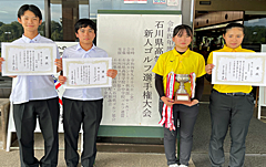 9月15日(金)にかほく市の金沢カントリー倶楽部で開催された第26回石川県高等学校新人ゴルフ選手権大会に出場しました。男子団体の部で優勝、男子個人の部で第3位に石川大晴くん、第5位に濱谷内俊太くんが、女子個人の部で第3位に橋本栞さんがそれぞれ入賞しました。
