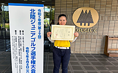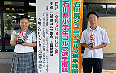 8月18日(金)に白山市の白山カントリー倶楽部松風コースで開催された第20回石川県ジュニアゴルフ選手権競技に出場しました。女子15歳〜17歳の部で東凛夏さんが優勝し、昨年に続き大会2連覇を成し遂げました。また、男子15歳〜17歳の部では石川大晴くんが第3位に、女子15歳〜17歳の部では橋本栞さんが第4位にそれぞれ入賞しました。