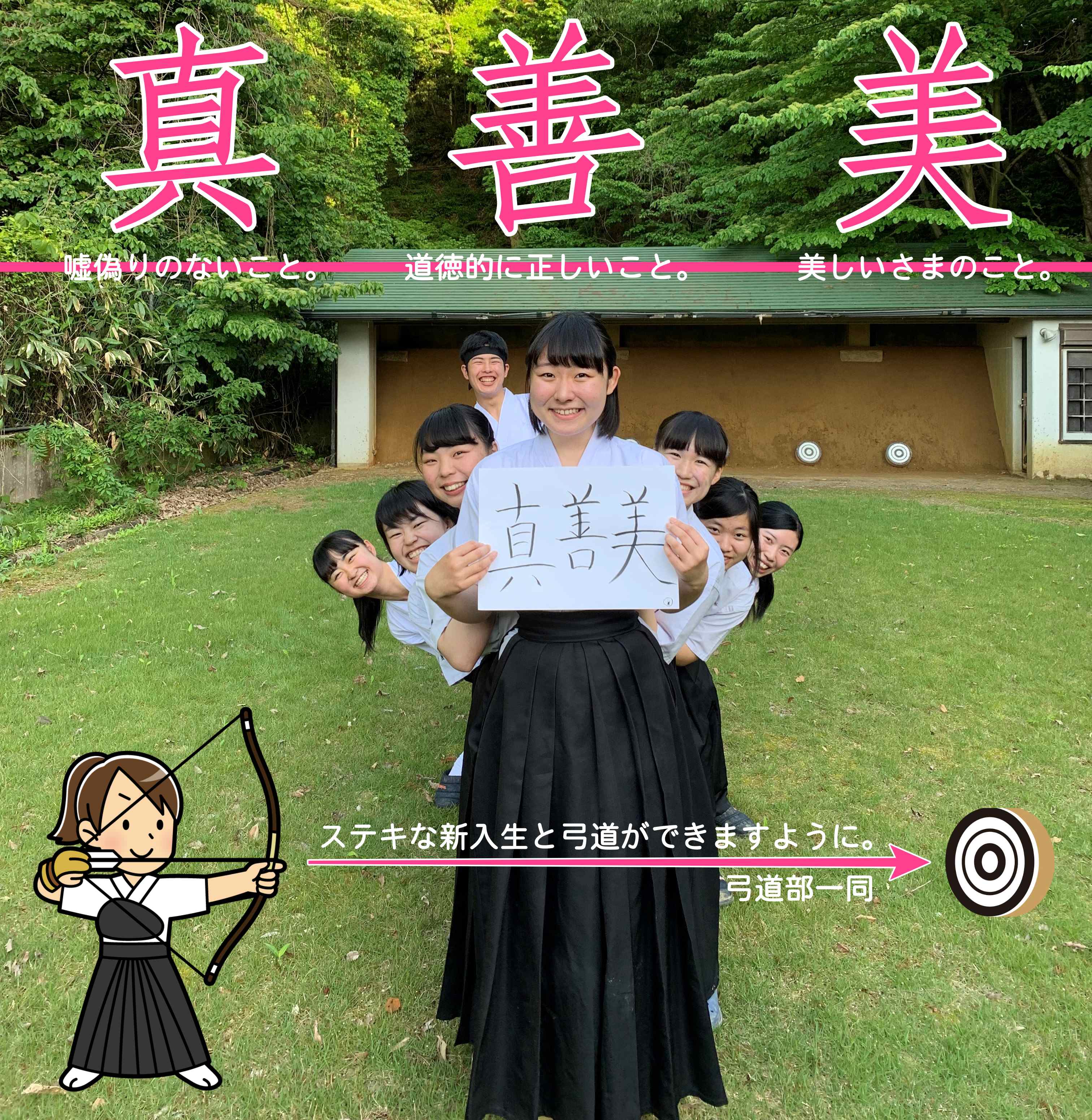 ※ 新入生のみなさん、弓道を通して「心技体+人間力」を鍛え、充実した高校生活を一緒に送りませんか?部員一同、多くの新入部員をお待ちしております!
