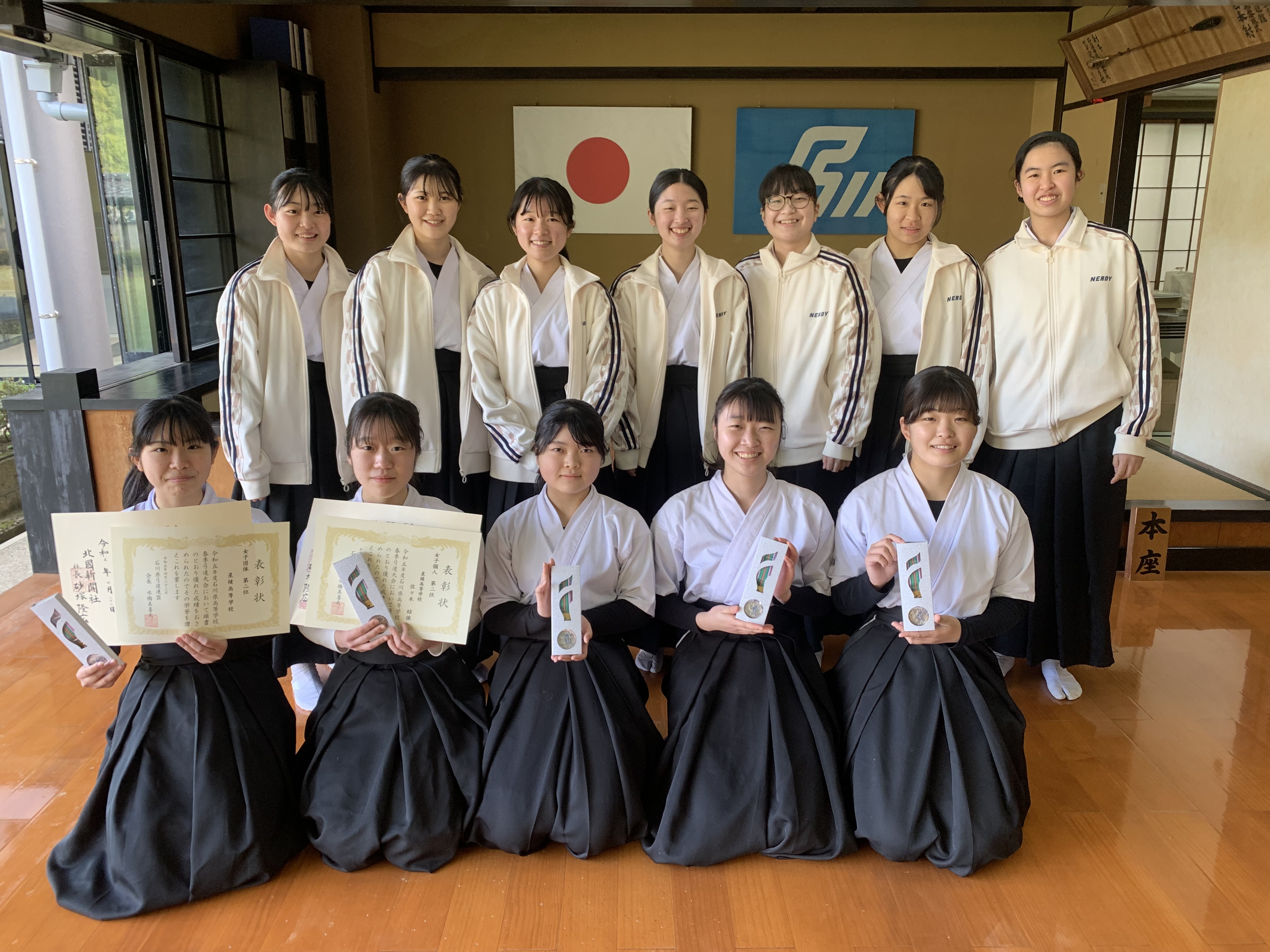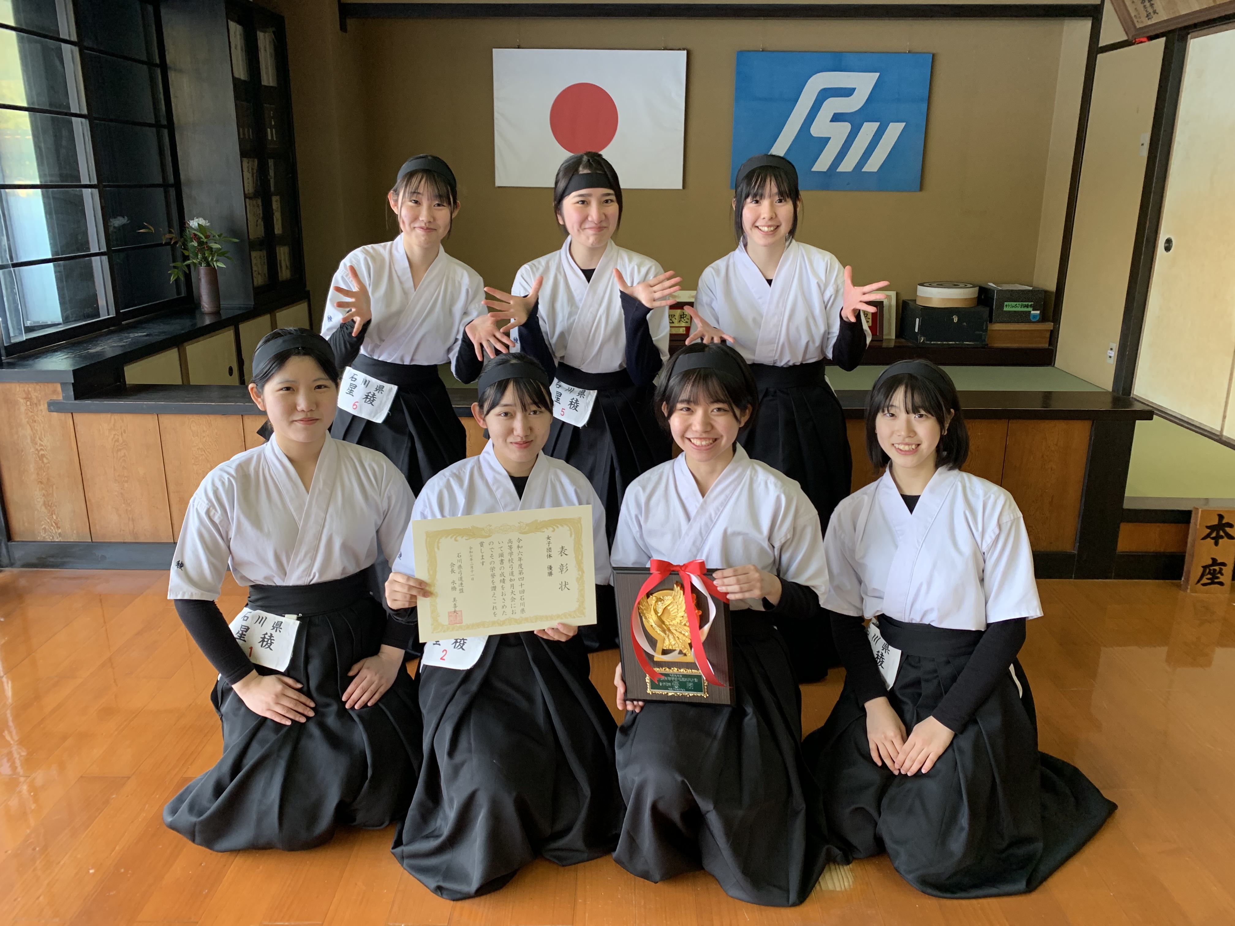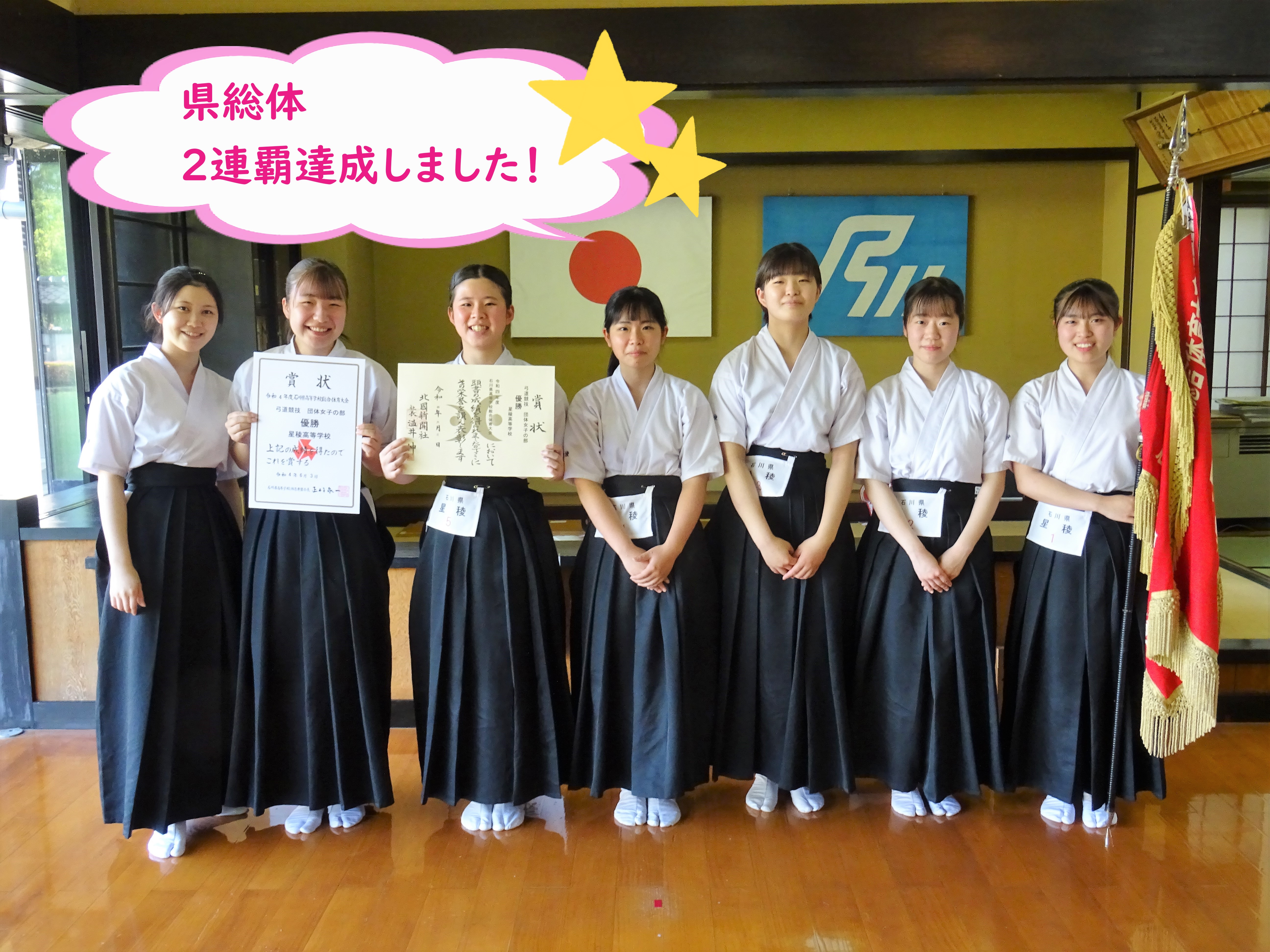 令和7年2月11日(火)に石川県立武道館にて令和6年度第40回石川県高等学校弓道如月大会が開催され、女子団体の部で優勝を果たし、昨年度に続く大会二連覇を達成しました!