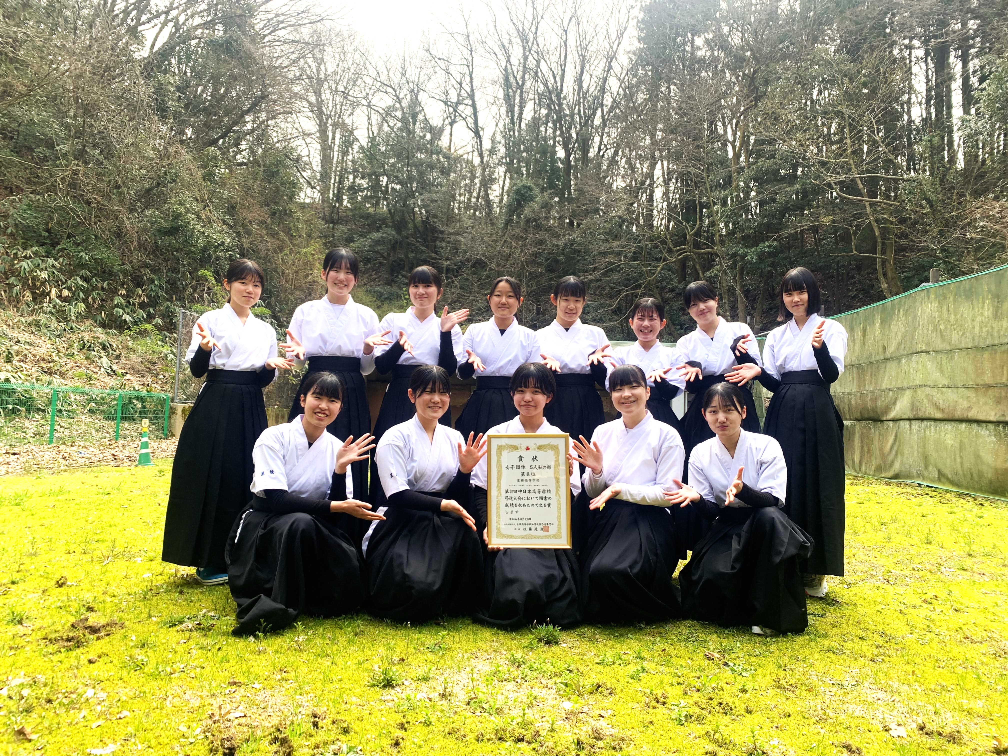 3年前、如月大会で女子団体優勝を果たしたものの、コロナウイルス感染症の影響で中日本大会が中止となってしまった過去があり、女子弓道部としては悲願の中日本大会出場となりました!!