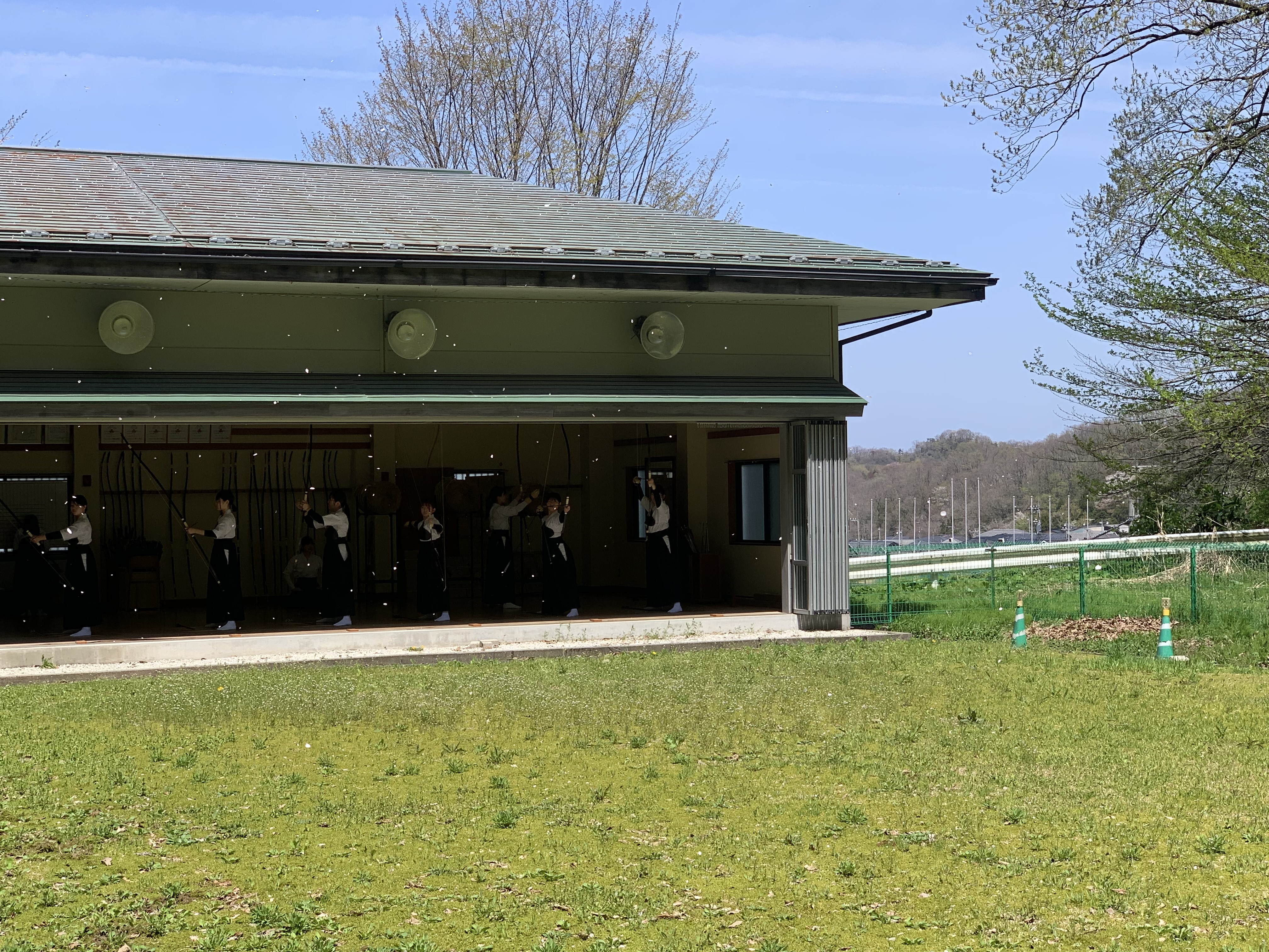 ▲桜舞う弓道場