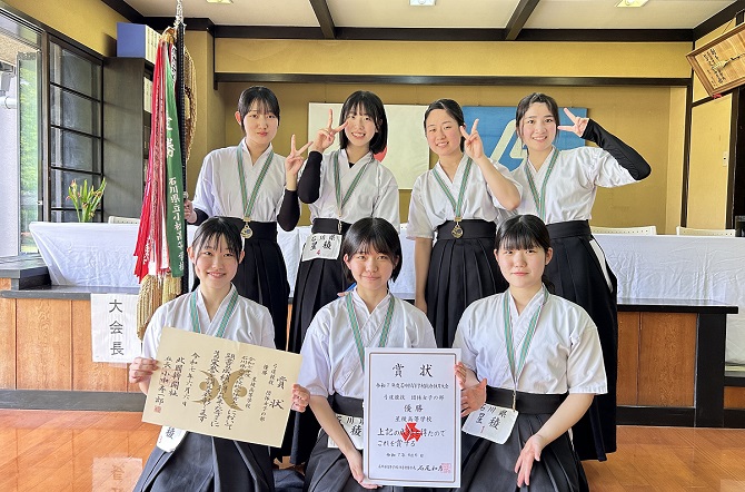 6月1日(日)~6月7日(土)、石川県立武道館で開催された令和7年度石川県高等学校総合体育大会において、団体の部で優勝しました。この結果、北信越大会及び全国大会への出場権を獲得しました。また、個人の部で澤越 楓花さんが2位、西野 綺凉さんが5位、田口 日南乃さんが8位に入賞し、澤越さんは北信越大会への出場権を獲得しました。