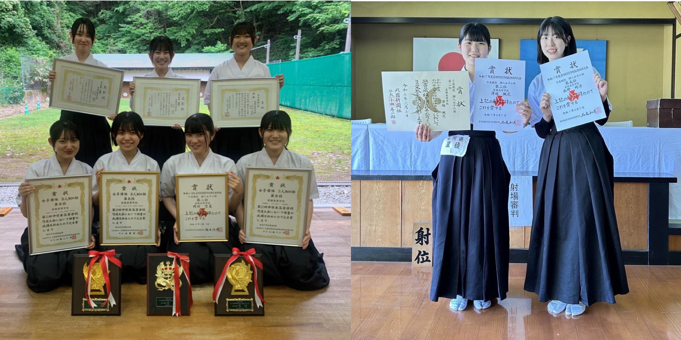 6月1日(日)、6月5日(木)~7日(土)に石川県立武道館にて、令和7年度石川県高等学校総合体育大会弓道選手権大会が開催され、女子団体の部で3年ぶりの優勝、そして、女子個人の部で準優勝(3年 澤越 楓花さん)と5位(2年 西野 綺凉さん)に入賞することができました。この結果から、7月31日より鳥取県で開催される令和7年度全国高等学校総合体育大会弓道競技大会に団体・個人ともに出場します!!
