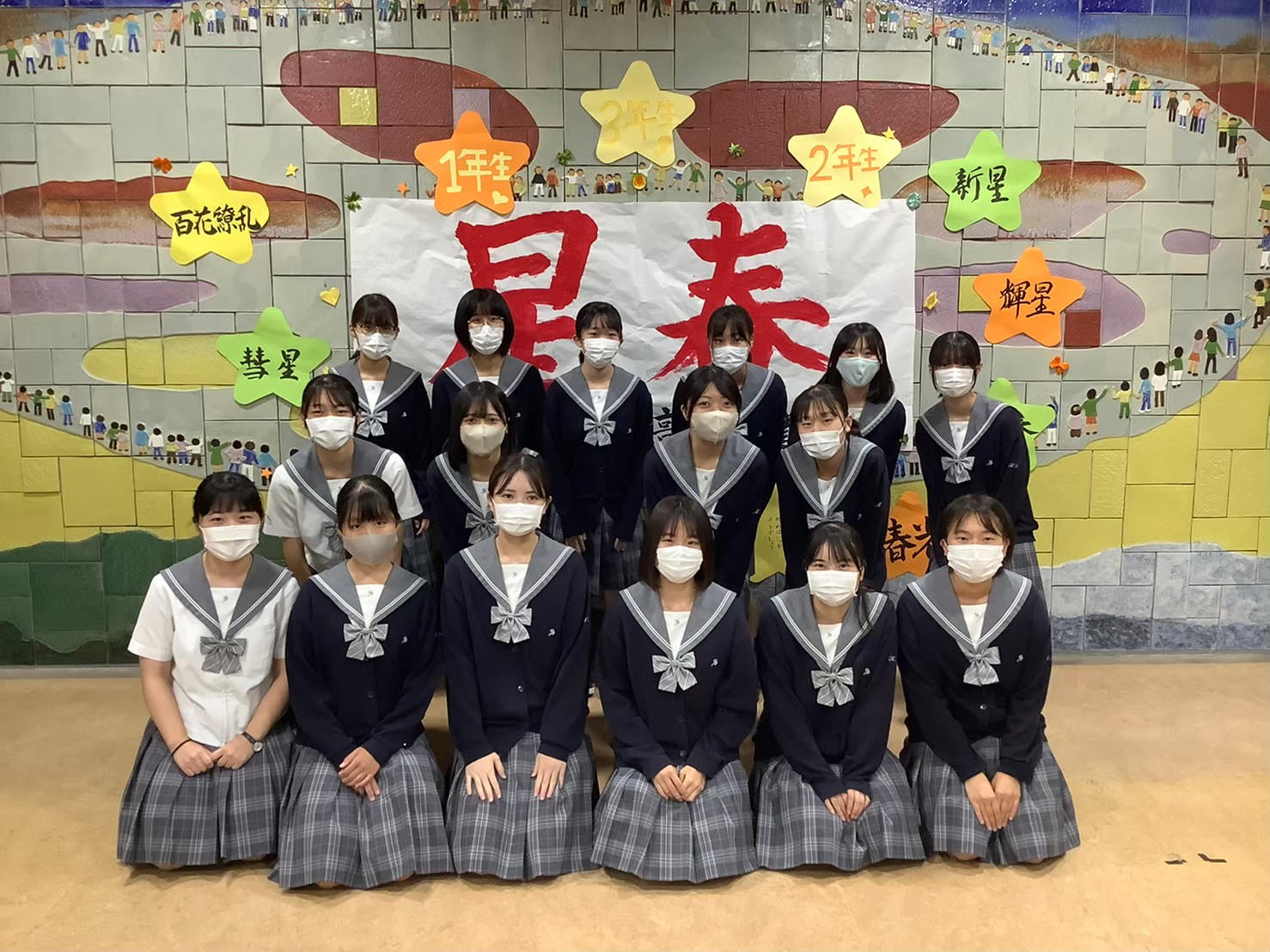 書道部は例年、4月からの学校生活を振り返り、これまでの日々を象徴する1文字を作品にしています。世相を表す漢字は、時に「災」や「戦」のような文字が選ばれ、胸を締め付けられるような思いをする年もありますが、部員が選ぶ漢字は、毎年明るく前向きな意味をもつ文字ばかりです。
