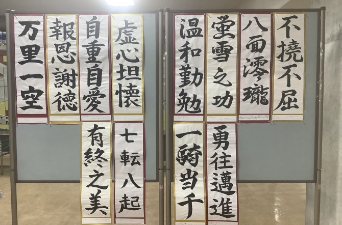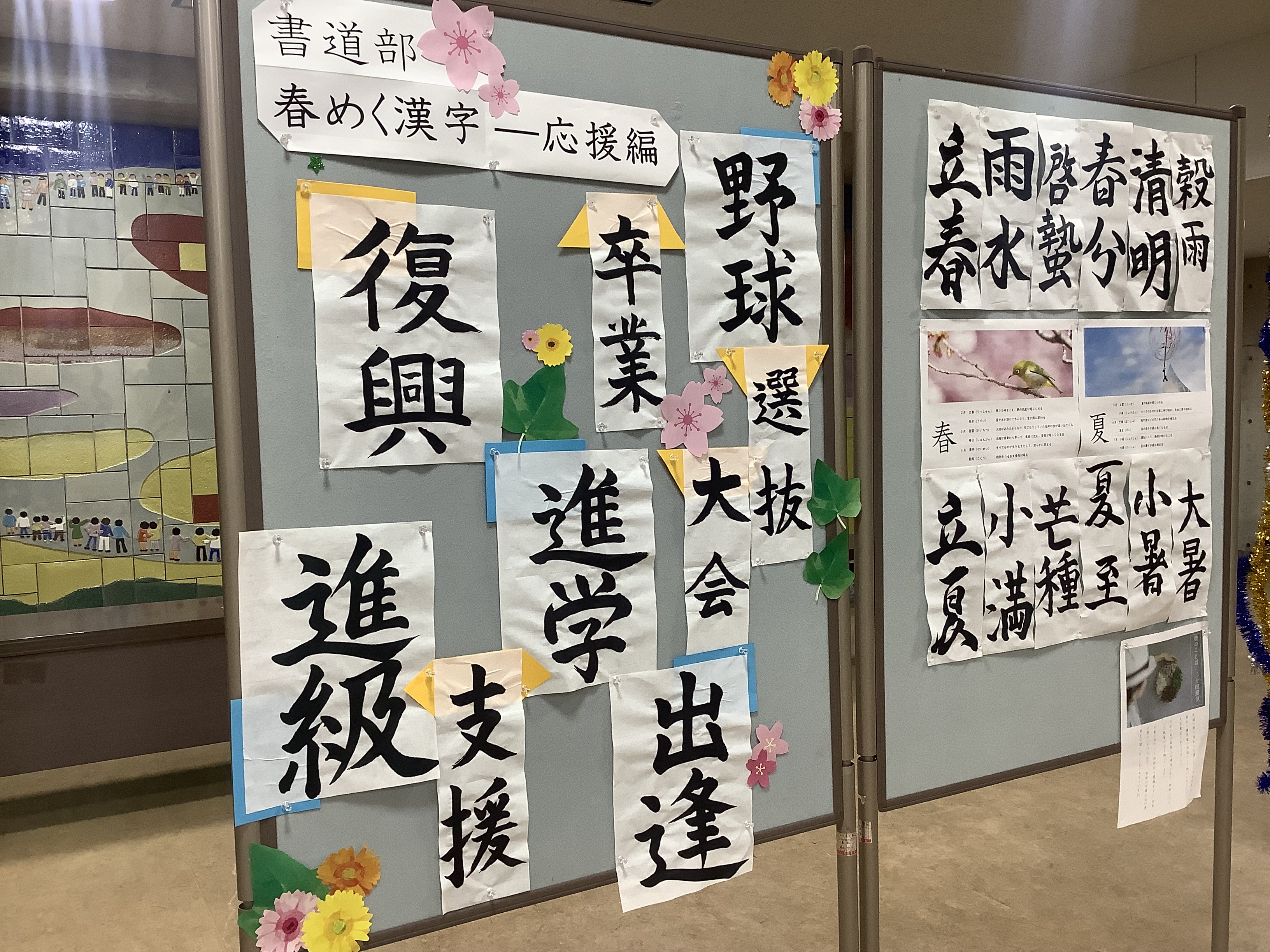 書道部員からのメッセージが新中学1年生・新高校1年生をあたたかく迎えます。