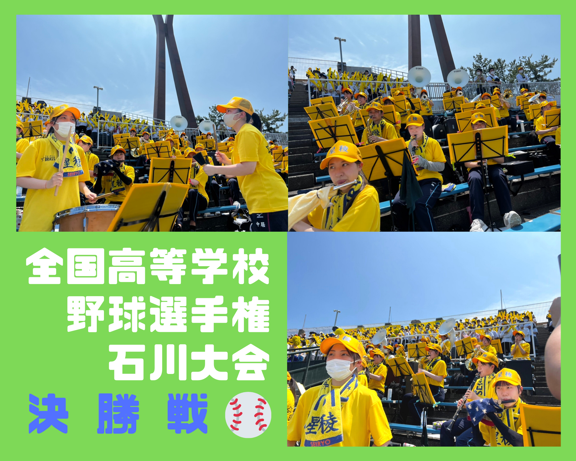 3月19日(土)から、阪神甲子園球場で行われた第94回選抜高等学校野球大会の応援に行きました!コロナ禍が続く中、私たち1・2年生は初めて甲子園という素晴らしい場所で演奏することができ、一生の思い出に残るような経験を野球部の皆さんにさせて頂きました。このような貴重な体験は星稜高校でしか出来ません!私たち吹奏楽部は新入生の皆さんにもぜひ応援の楽しさを味わってもらいたいと思っています!改めて野球部の皆さん、部活指導を勇退される林先生、本当にお疲れ様でした!そして素晴らしい経験、たくさんの感動をありがとうございました!
