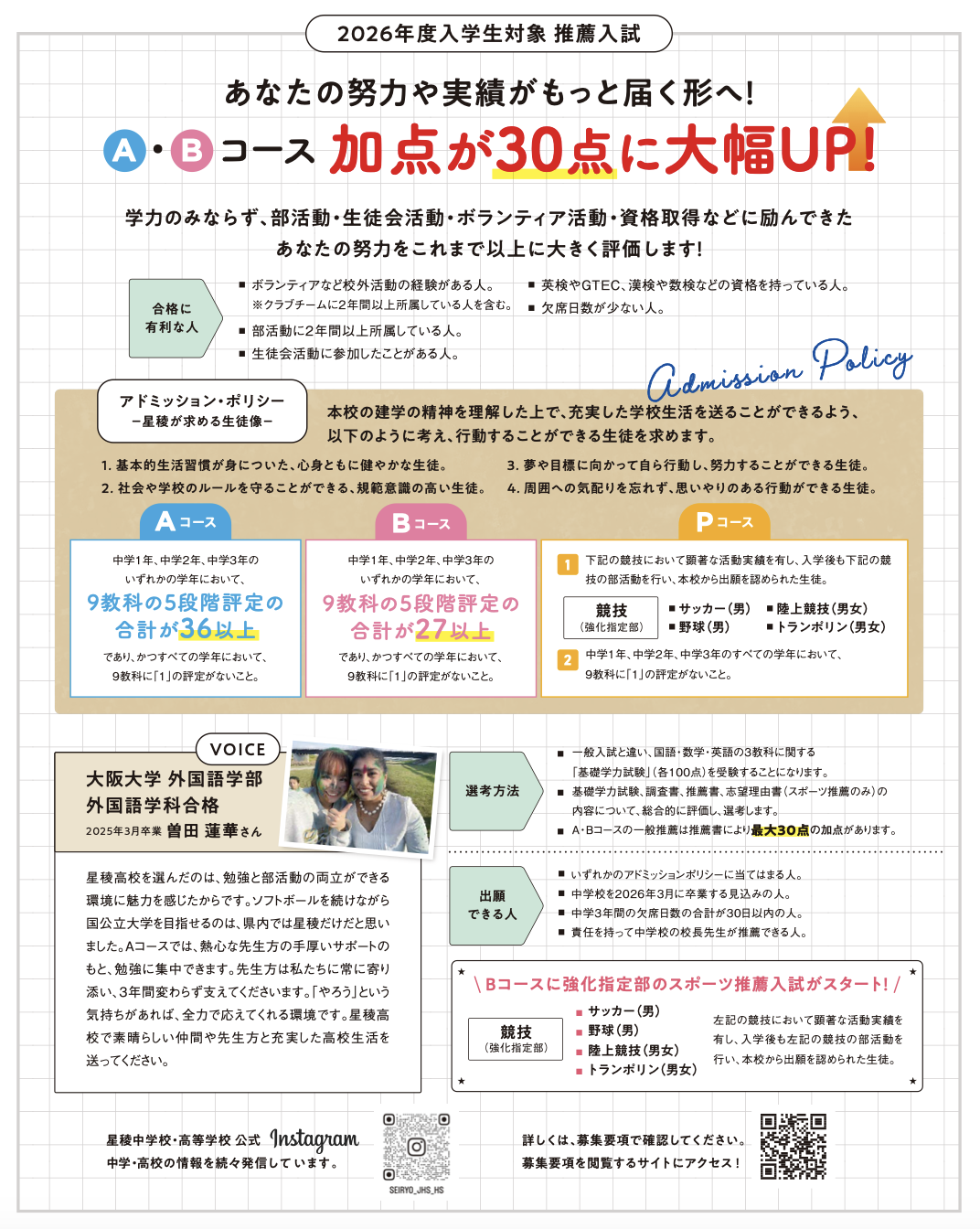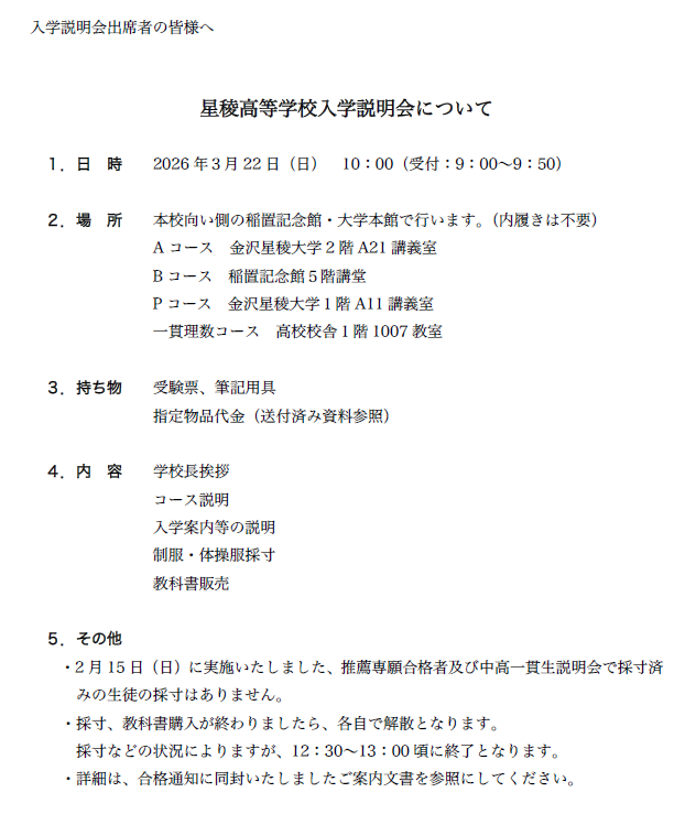 ▶2026年度 推薦入試の合格発表について