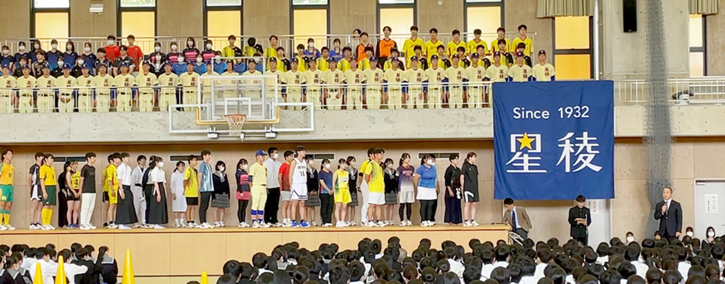 応援委員会では、大会を控える生徒たちを鼓舞するため、激励会を開き、応援委員のリードのもとでエールを送っています。応援委員が中心となり、全校生徒の思いを一つにして、大会を控える生徒たちを盛り上げています!
