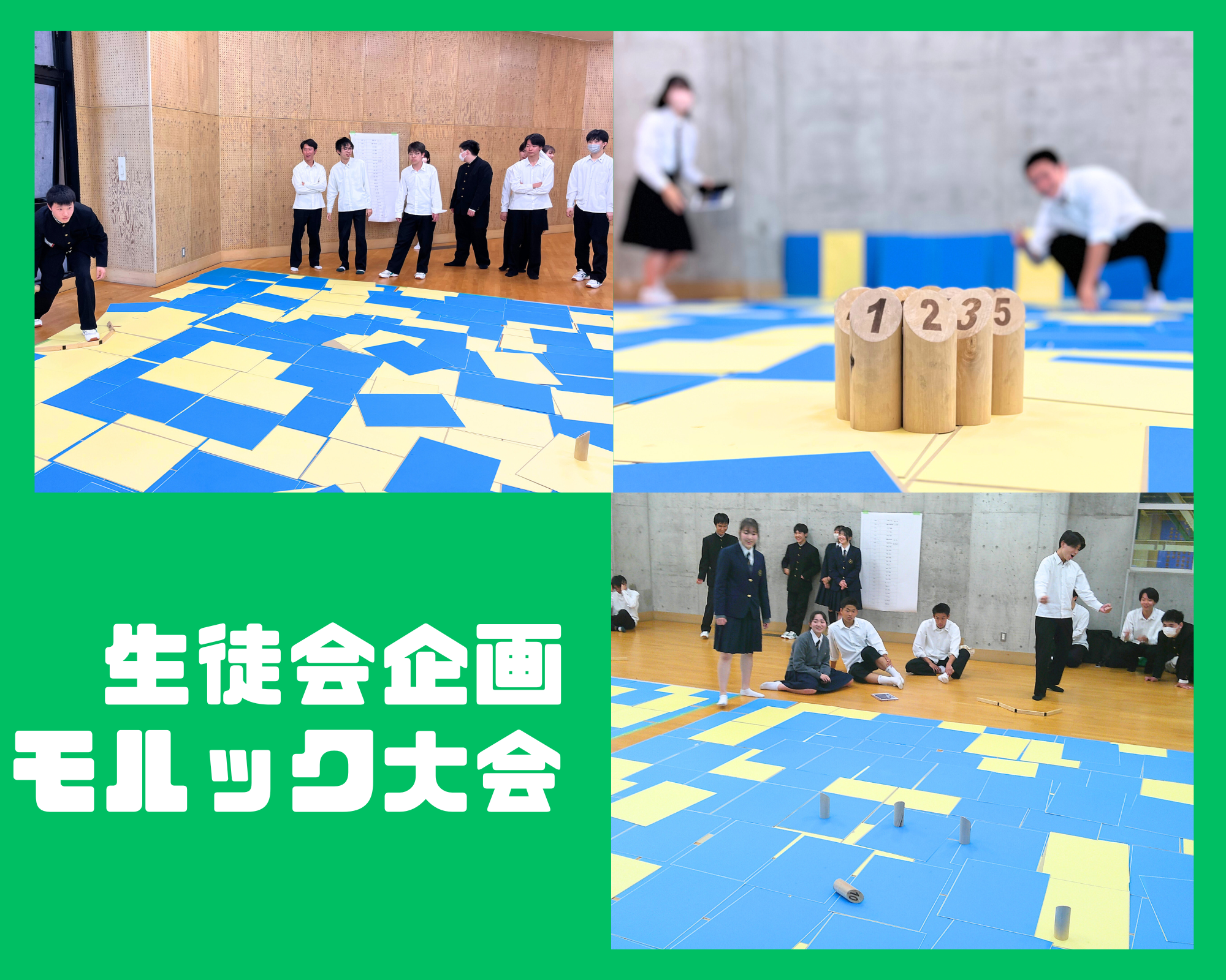 4月30日(火)の放課後、第一体育館サブアリーナで生徒会主催のモルック大会を行いました。モルックとはフィンランドの伝統的なゲームをもとに開発されたスポーツです。年齢、性別等にかかわらず、一緒に競い合えるスポーツです。今回の大会では、そんなモルックを通してインクルーシブな社会について考えること、生徒間の交流を深めることを目的としました。