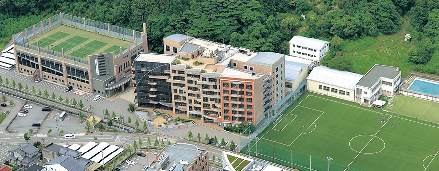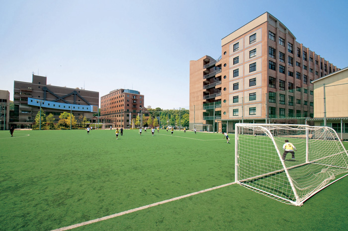コミュニケーションの創出をテーマに設計された広大なキャンパス。競技ごとに用意された多彩な運動施設やコンピュータ室など充実した環境が整い、大学や高等学校と共有する施設もあります。