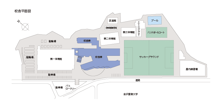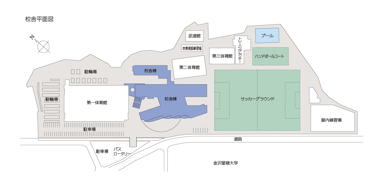 | その他 | 第一体育館、第二体育館、第三体育館、屋内練習場、武道館、弓道場、トレーニングセンター、吹奏楽部練習場 |