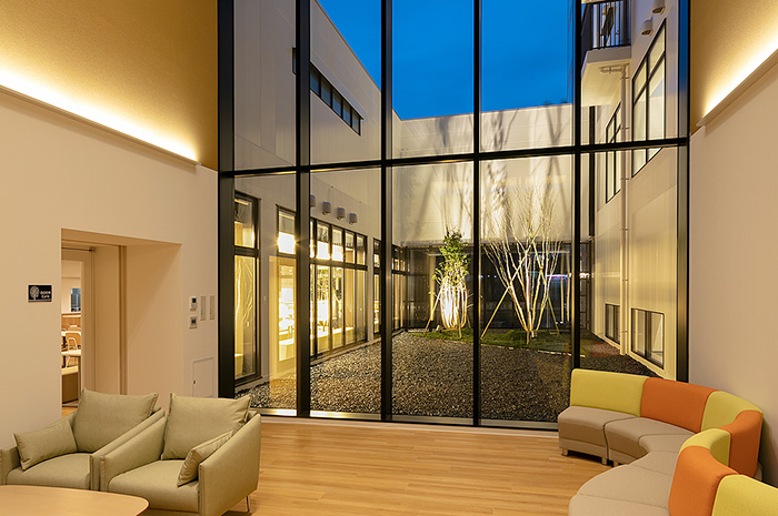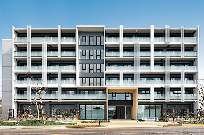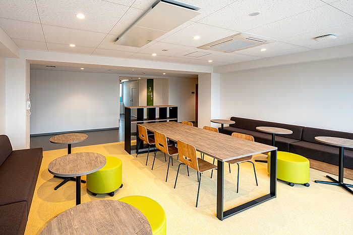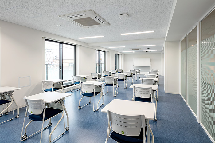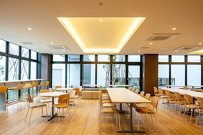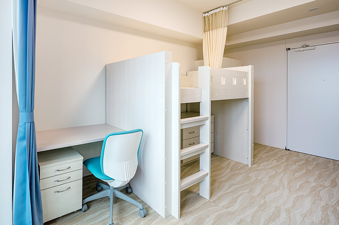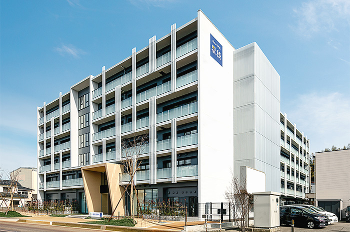 2021年3月に竣工したこの総合寮は、学校まで徒歩約16分・自転車約7分というロケーションで、規則正しい生活を通し、寮の仲間たちと思い出に残る充実した学園生活を送ることができます。管理栄養士監修によるバランスに優れた朝・夕の食事が365日提供され、定期試験約1週間前からはチューターによる学習サポートも受けることができます。不在時の宅配便の受け取りや体調がすぐれないときでも、寮職員が住み込みなのでとても安心です。Wi-Fi環境のもと、部屋には生活に必要な学習机や冷蔵庫といった家具や家電も備わり、男女別フロア設計による共有スペースも各階に充実しています。