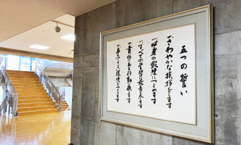 学業はもちろん、礼儀正しさ、周囲への感謝、出会いから学ぼうとする謙虚な姿勢など、やがて社会に羽ばたくための人間性の基礎を培うことも学校の大きな使命です。建学の精神に基づいた教育方針と目標についてご紹介します。